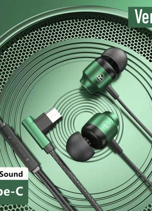 Auriculares magnéticos cable L Gaming Metal verde HiFi tipo C teléfono ordenador micrófono deporte