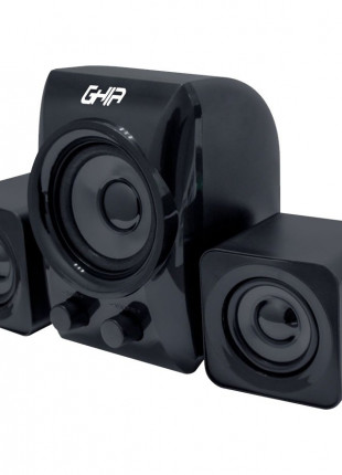 BOCINA PARA PC 2.1 GHIA NEGRA GRIS AUDIO 3.5MM ALIMENTACION USB 5W PC AUDIO MUSICA ESCRITORIO