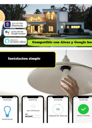 Bombilla inteligente luz blanco led WiFi foco asistente Google Home Alexa Siri Control por voz cel
