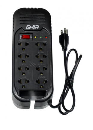 REGULADOR DE VOLTAJE GHIA 1300VA 600W 8 CONTACTOS NERGIA NEGRO CABLE PC LAPTOP SMART TV PANTALLA PC