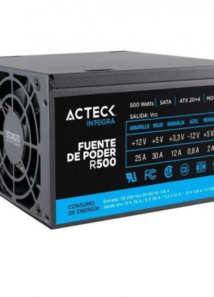 FUENTE DE PODER ACTECK TRUE BASIX 500W 24PIN 2 S-ATA COLOR PLATA TB-05003 PC ENERGIA CABLE