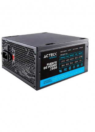 FUENTE PODER ACTECK FACTOR ATX 600 W 204 PINES 3 SATA 2 MOLEX PCI-E 62 VENTILADOR 12CM MODELO Z-600