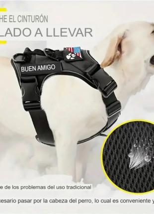 Pechera Arnés perros verde M collar reflectante chaleco parches negro ajustable mascotas táctico