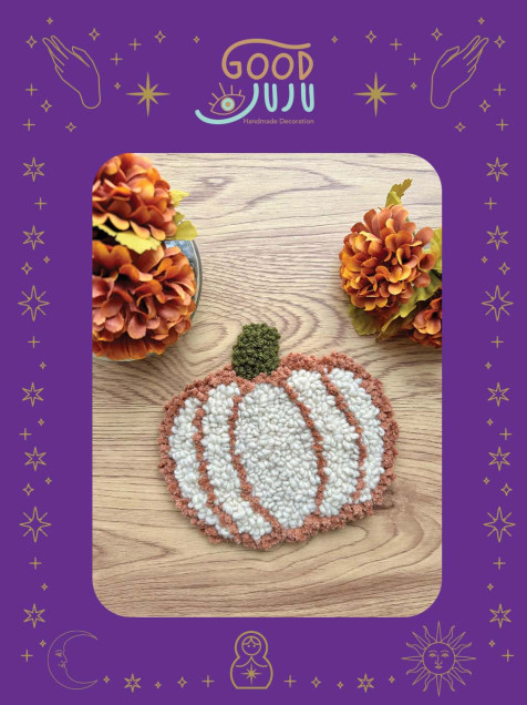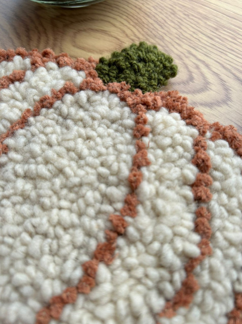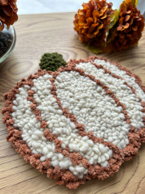 Hecho a mano con la técnica "Punch Needle" de 16 cms de altura y 18 cms de ancho, hecho de estambre 50% algodón 50% acrílico.