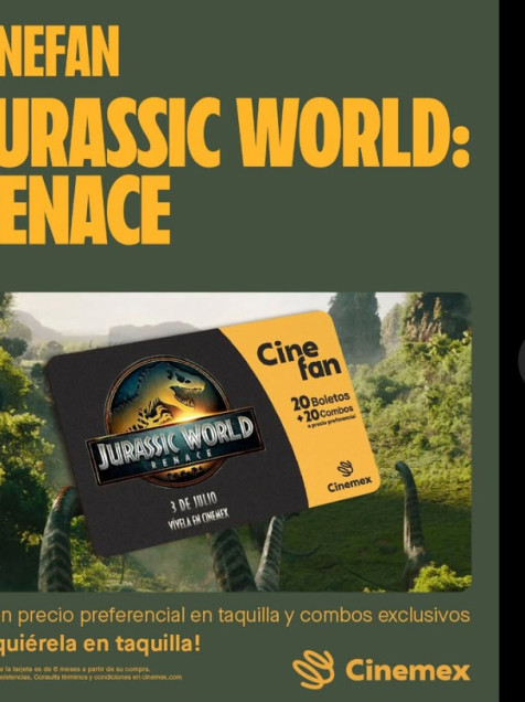 - 1 Tarjeta Jurassic cinefan $100MXN