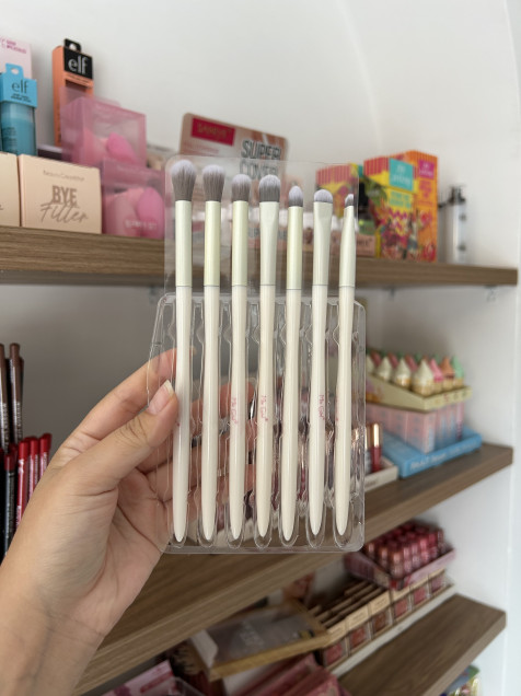 Set de 7 brochas de ojos con cerdas súper suaves que te ayudarán a aplicar sombras en polvo o en crema.