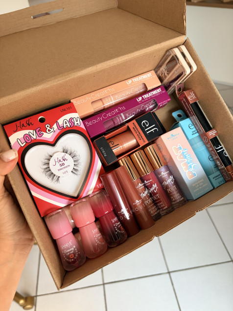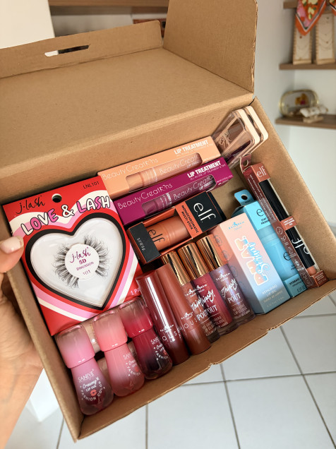 Cajita emprendedora de marcas mixtas como Italia Deluxe, saniye, Jlash, ELF y Beauty Creations.