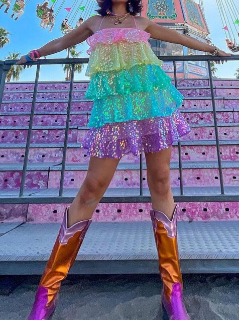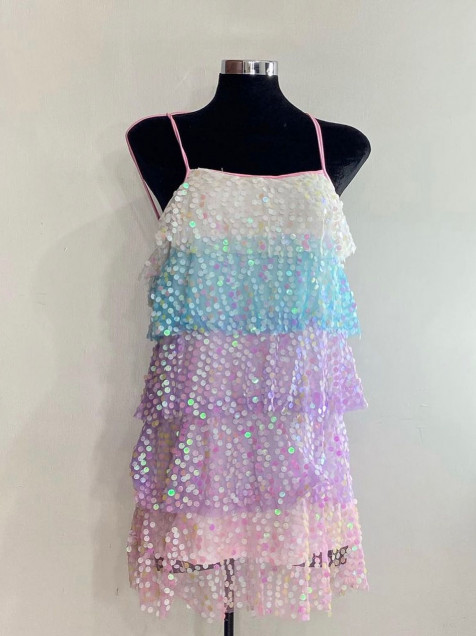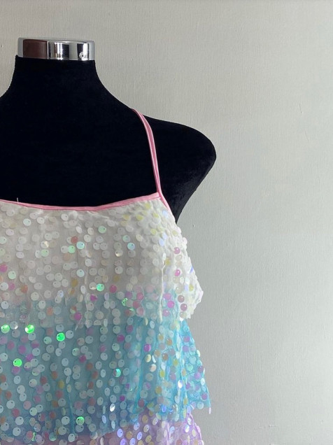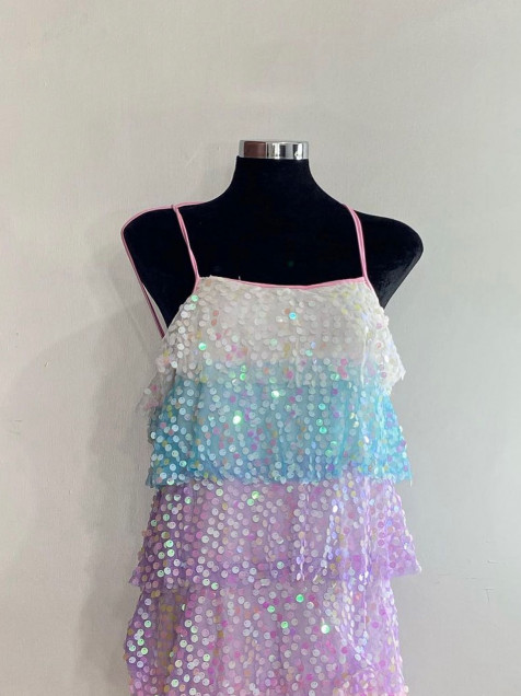 restock vestido holanes y lentejuela en varios colores con tirantes rosa