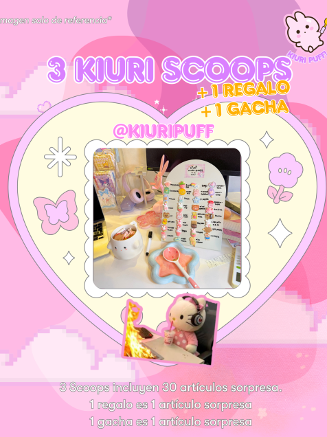 3 Kiuri Scoop (30 artículos sorpresa) + 1 regalo + 1 Gacha