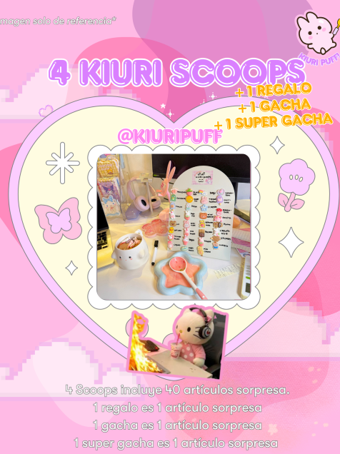 4 Kiuri Scoop (40 artículos sorpresa) + 1 regalo + 1 gacha + 1 super gacha