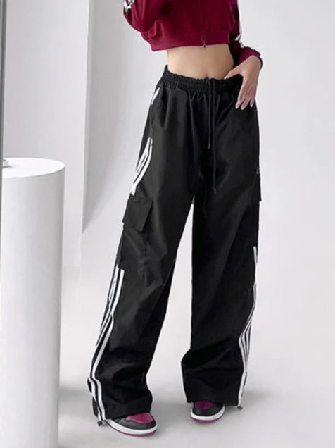 Pantalón chandal a rayas, Cargo de pierna ancha holgados.