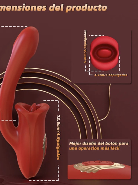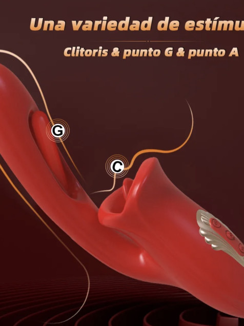 Este vibrador tipo rabbit combina estimulación profunda del punto G, un aleteo envolvente y una boca que imita el sexo oral con movimientos y vibraciones que se sienten demasiado reales.