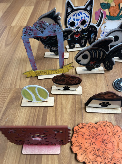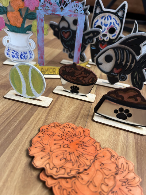 Paquete de accesorios para altar de mascotas ❣️ incluye animalitos Talavera, platos, pelota, 2 marcos de fot, flores y velas.