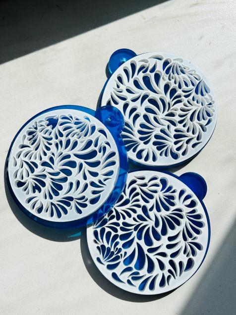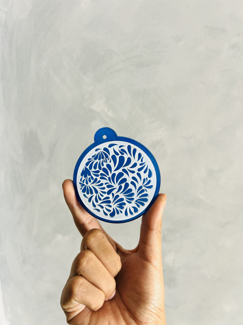 Esferas fabricadas en acrílico con decoración tipo Talavera.