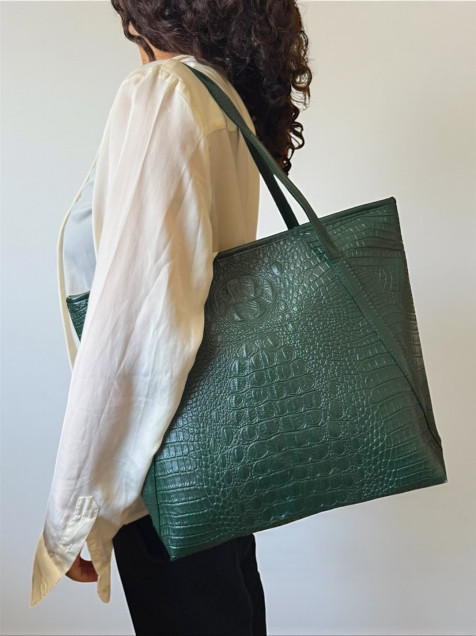 Tote grande verde bosque textura croc en Corte sintético Nueva
