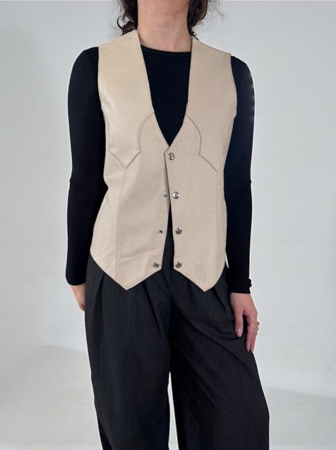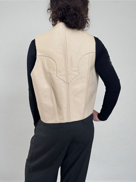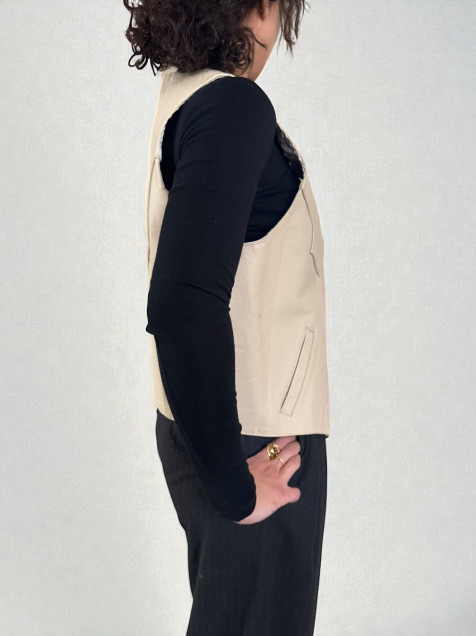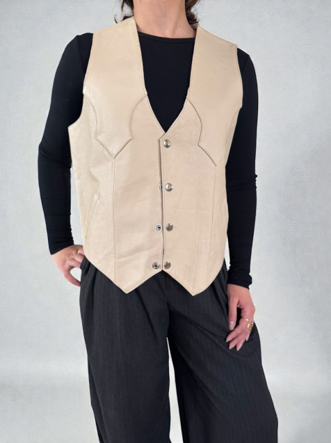 🍰Chaleco vintage beige súper bello 100% piel con botones a presión plateados, en perfecto estado solo en su forro y por atrás algunas manchitas que se