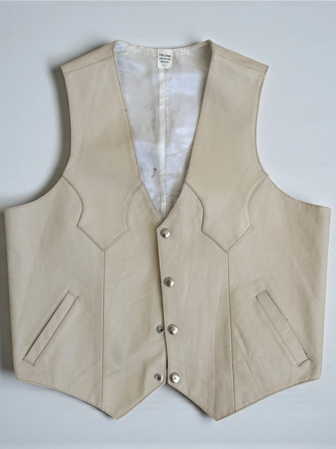 🍰Chaleco vintage beige súper bello 100% piel con botones a presión plateados, en perfecto estado solo en su forro y por atrás algunas manchitas que seguro se quitan