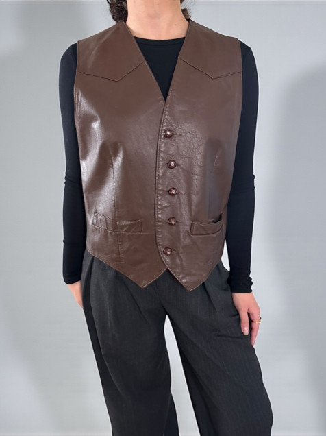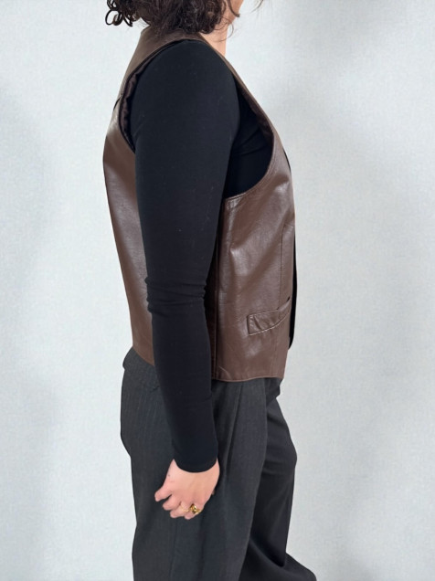 🤎chaleco vintage café hermoso y botones súper bellos, 100% piel en perfecto estado!