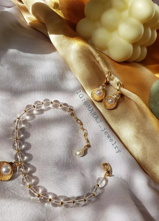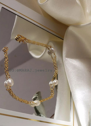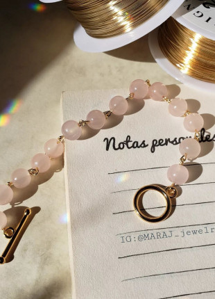 Pulsera en tono rosa claro con componente en chapa de oro 💐..