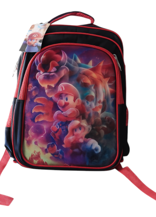 mochila escolar primaria mario bross negro con roja