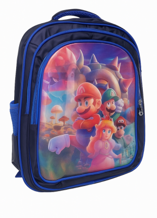 mochila escolar negro con azul mario