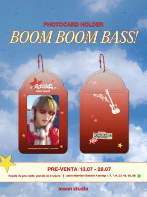 ¡Eleva tu colección K-Pop con este photocard holder "BOOM BOOM BASS!" 🎸⚡️. Diseño fanmade vibrante y llamativo con detalles en rojo que harán resaltar tu photocard favorita. ¡Muestra tu pasión con estilo!
