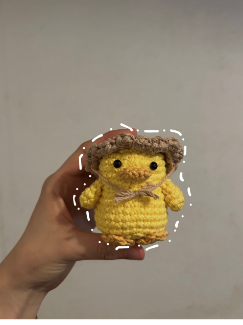 Pollito de 10 cm con sombrero no removible, puede ser en llavero