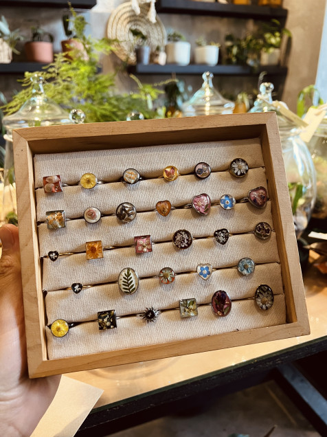 Anillos artesanales encapsulados con flores y hojas reales. Cada anillo es una pequeña obra de arte natural, ¡una pieza única para adornar tus manos con un toque de la Madre Tierra! Ideales para regalar o darte un caprichito botánico.