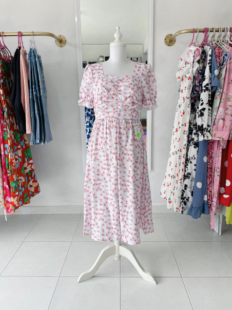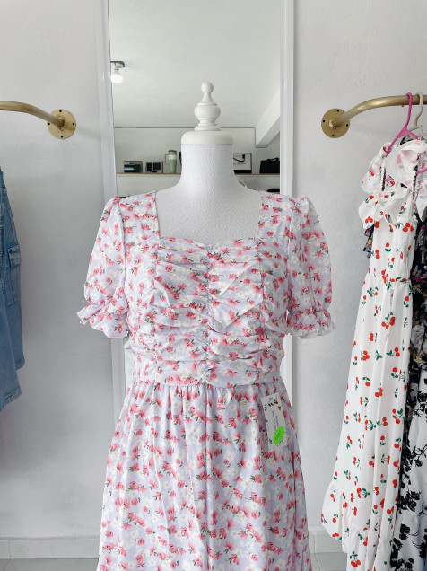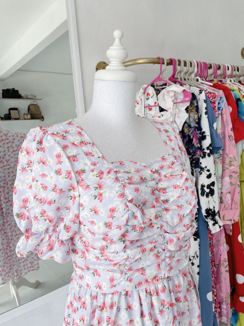 Vestido lila floral corrugado del pecho con zipper