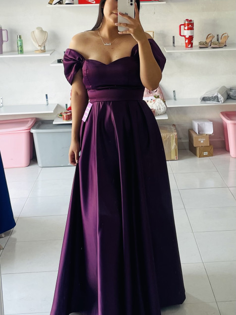 Vestido morado satinado