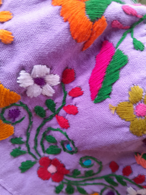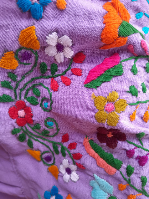 Vestido Lirio en Manta Artesanal - Diseño Floral Bordado a Mano