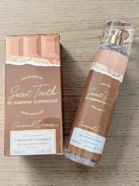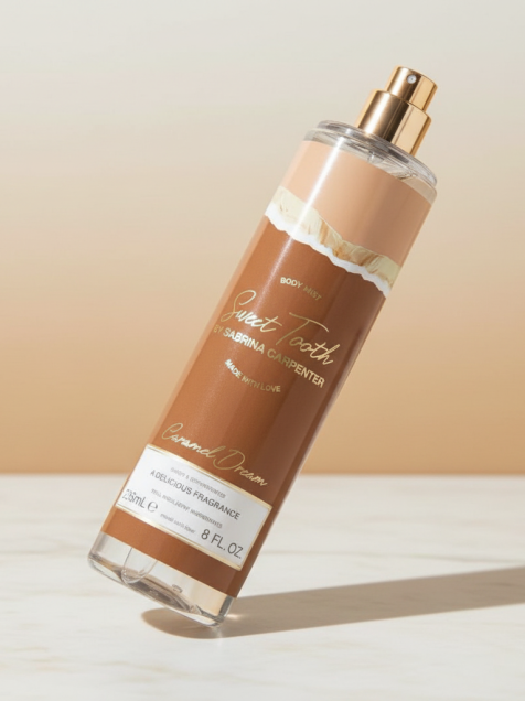 ¡Date un gustito sin culpas! Body Mist Sweet Tooth de Sabrina Carpenter en su dulce variante Caramel Dream. Un aroma delicioso y duradero que te acompañará todo el día, dejando una estela irresistiblemente acaramelada. ¡Aplícalo y a conquistar!