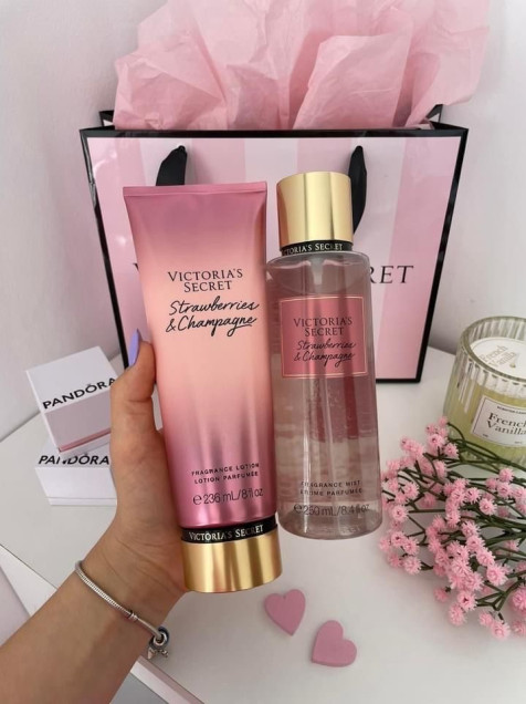 ¡Eleva tu día con el Body Mist Fresa y Champaña de Victoria's Secret! Un aroma dulce y burbujeante que te envuelve en una sensación de frescura y sofisticación. Perfecto para un toque de glamour diario. Incluye crema y body mist.