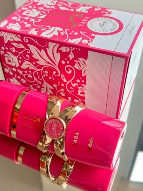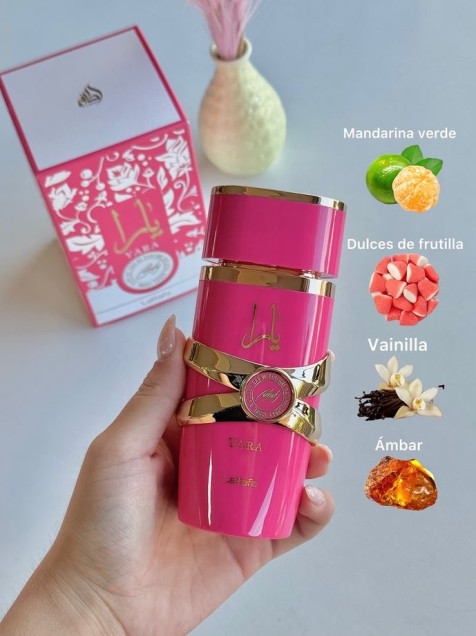 Yara Candy de Lattafa, un perfume que es pura tentación. Su vibrante envase rosa encapsula una fragancia dulce y juguetona con notas de mandarina verde, dulces de frutilla, vainilla y un toque cálido de ámbar. ¡Un must para las amantes de los aromas gourmand!