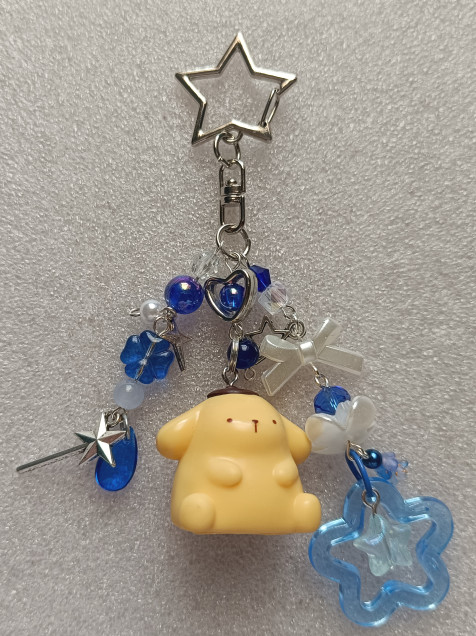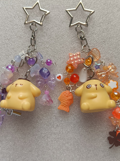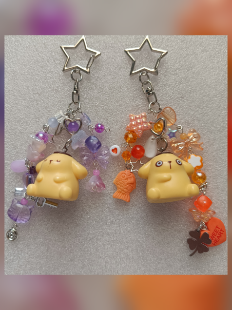 Llaveros con figuras de pompompurin adornados con muchas cuentas