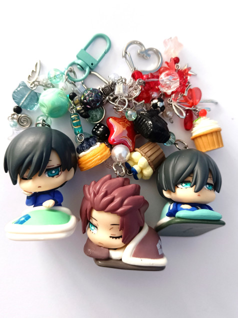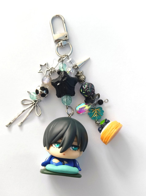 Llaveros con figuras de Itoshi Rin e Itoshi Sae decoradas con cuentas variadas