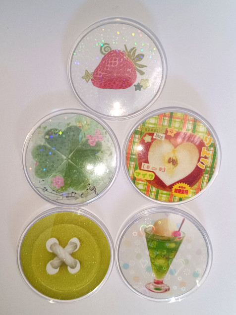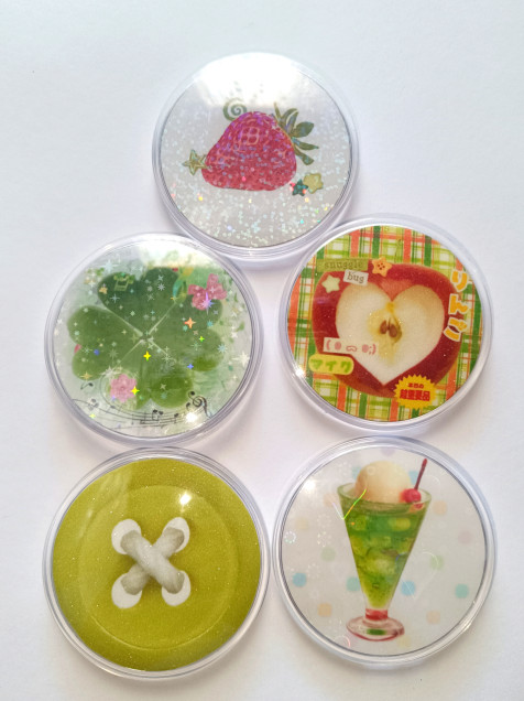 Paquete de 5 pines de acrílico DIY con imágenes estilo juminocore con diferentes holográfico