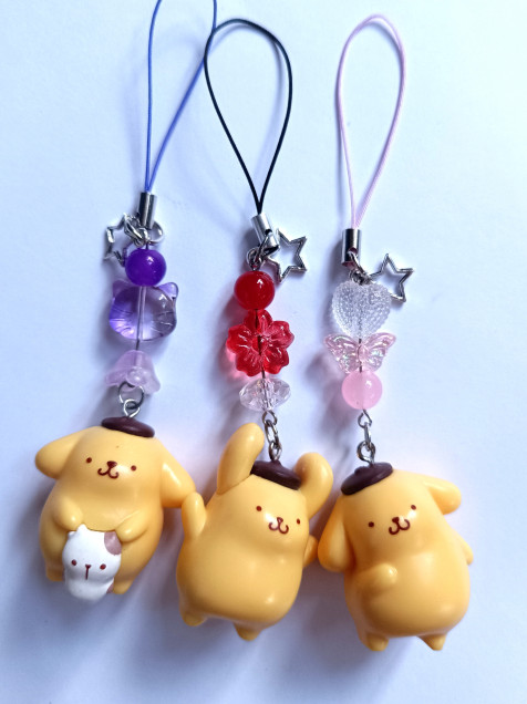 Colgantes sencillos con figura de pompompurin decorados con cuentas de acrílico y resina