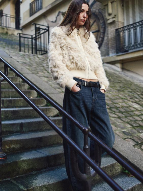 Chamarra de cuello solapa y manga larga acabado en puño. Bolsillos delanteros de vivo. Cierre frontal con cremallera.