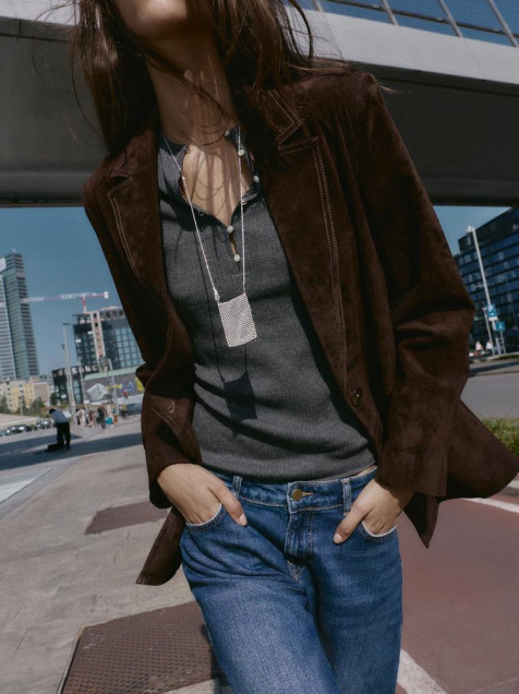 Collar de cordón metálico con dije de bolso y aplique de strass. Cierre con gancho.