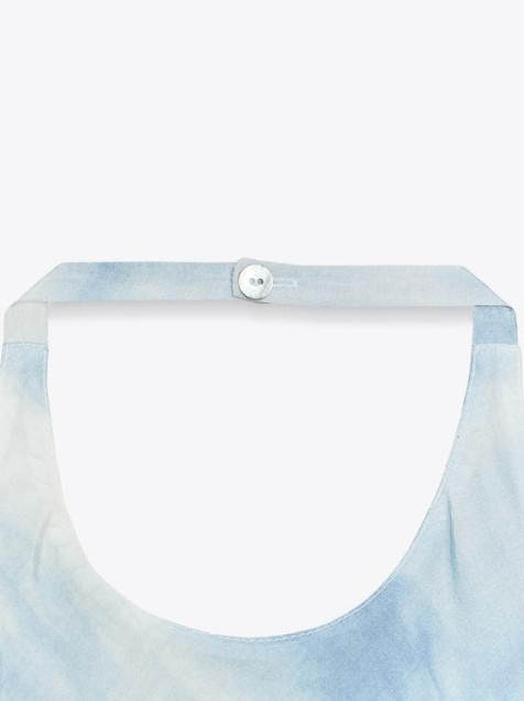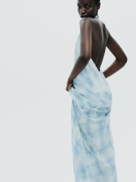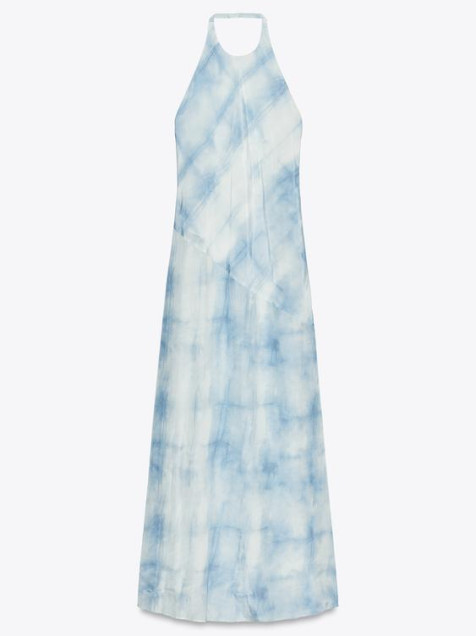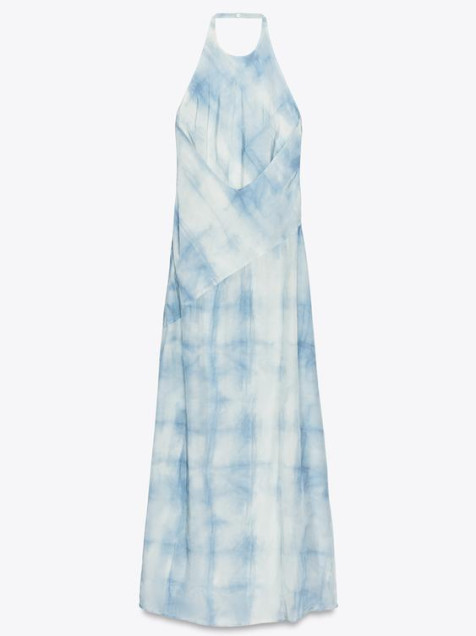 Vestido largo de cuello halter con botón. Espalda descubierta.