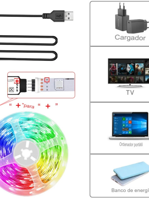 Tira Luces Led 5M habitación RGB cambia de Color cinta fiesta casa música control app USB tv