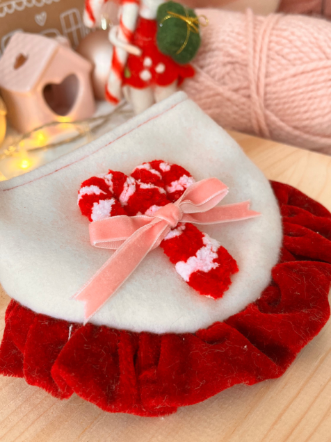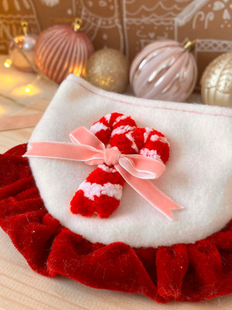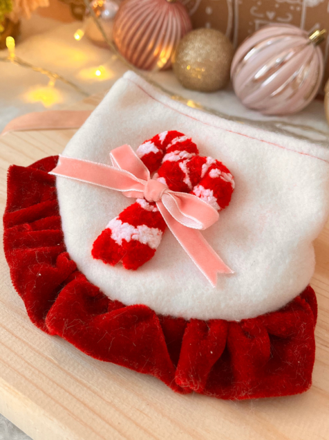 Haz que tu peludito luzca adorable esta Navidad con esta bandana roja con blanco 💕, bordada a mano con un dulce navideño coqueto. Hecha de tela suave y de alta calidad, es perfecta para complementar cualquier look festivo y llenar de ternura cada momento navideño.