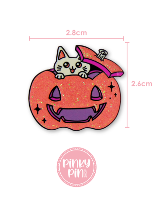 Pin Metálico Michi Calabaza Glitter*