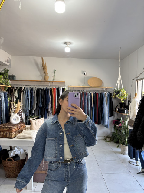 Chamarra de mezclilla cropped de botones, queda hermosa !!!