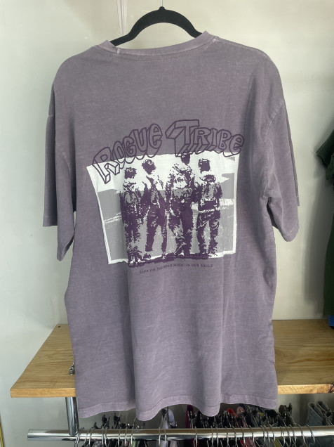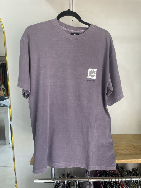 Playera morada nueva de Pull & Bear con estampado por delante y por detrás.