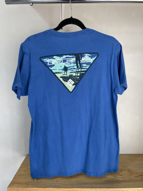 Playera de segunda mano, marca Columbia con estampado por ambos lados.