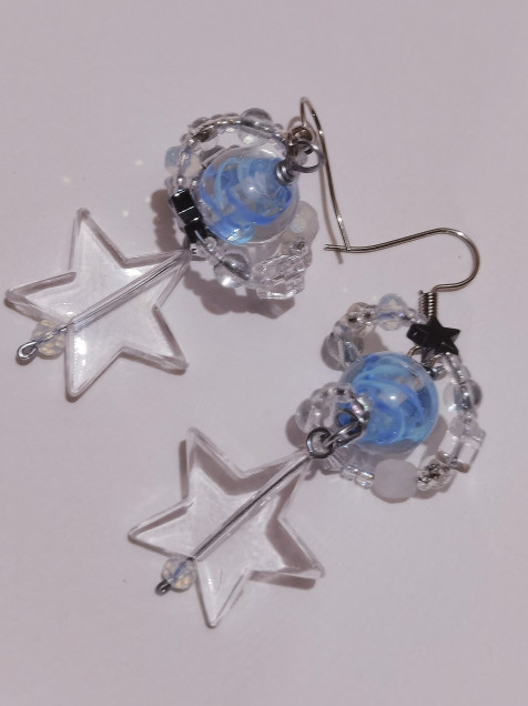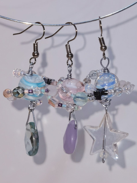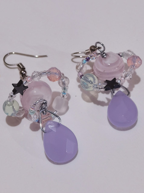 Aretes elaborados a maño con cuentas de vidrio, chaquira, acrílico y hematita