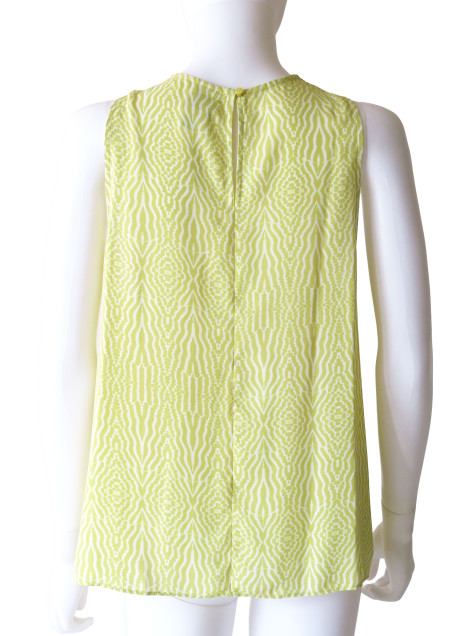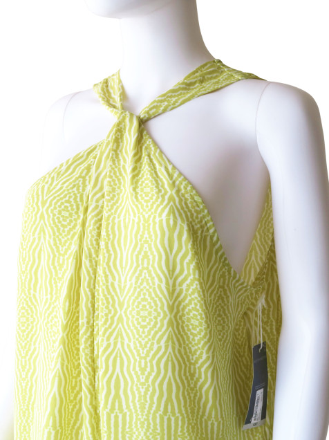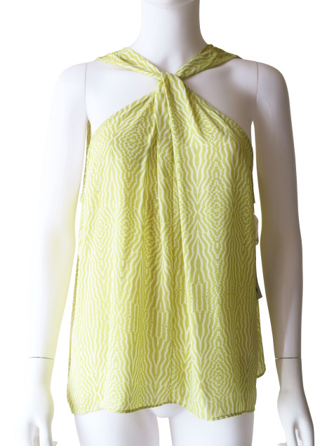 Blusa con cuello halter cruzado y estampado verde lima vibrante muy bonito. Es nueva y conserva su etiqueta.