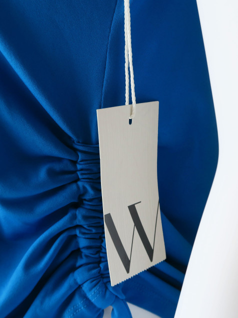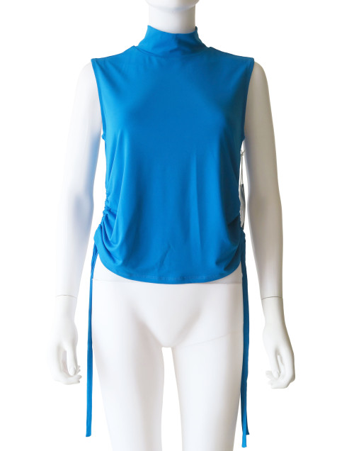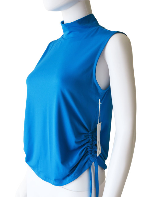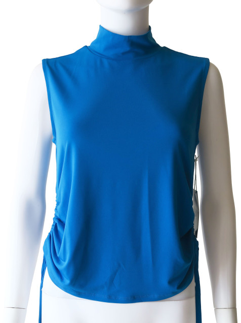 Blusa azul con frunces ajustables en los costados. Es nueva y conserva su etiqueta.